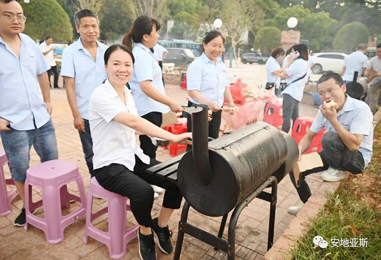 歡聲笑語隨著縷縷炊煙飄蕩在空中,大家烤的烤、扇風(fēng)的扇風(fēng)、刷料的刷料、準(zhǔn)備食材的準(zhǔn)備食材、吃的吃、喝酒的、喝可樂的不忘舉杯對飲,短短2個小時,大家相互協(xié)作,相互探討又相互調(diào)侃,整個場面是如此的和諧、放松而又自在,將所有的不愉快和壓力統(tǒng)統(tǒng)甩到了一邊。